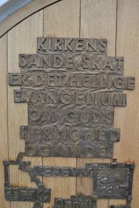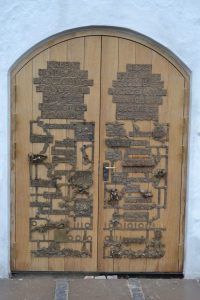 Så er Hein Heinsens dør med inspiration fra Luthers Tese 62 på plads i Hørve Kirke